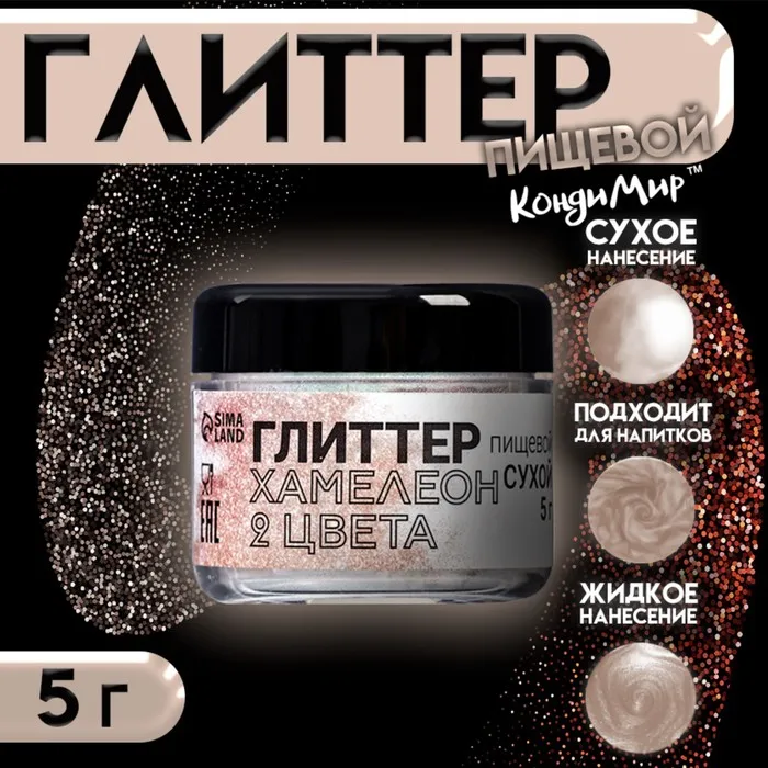Глиттер кандурин «Хамелеон», 2 цвета: красный, золотой, фракция 10-60 µm, 5 г