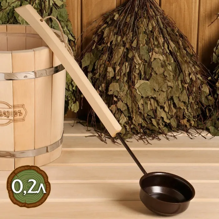 Ковш - черпак для бани и сауны, 200 мл, нержавеющая сталь, деревянная ручка, 70 см