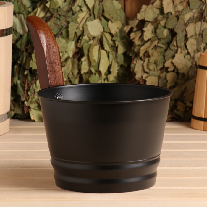 Ушат для бани и сауны, 4 л, сталь, с деревянной ручкой, чёрный