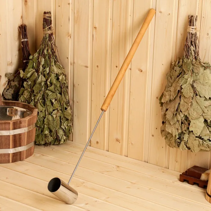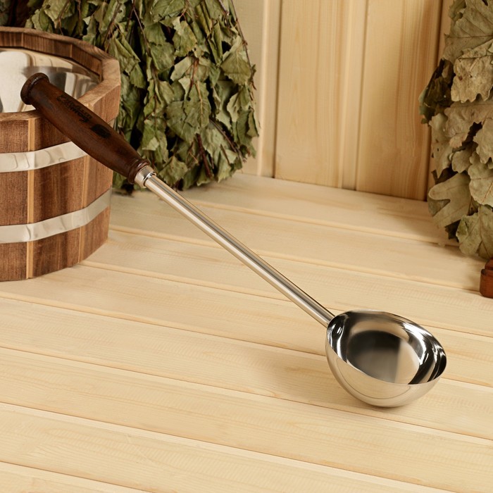 Ковш - черпак для бани и сауны, 700 мл, 58 см, нержавеющая сталь, деревянная ручка