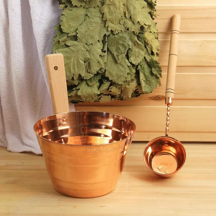 Набор для бани и сауны «Каменка», из двух предметов: ушат, 5 л, медь, деревянная ручка и черпак, 200 мл, медь, деревянная ручка