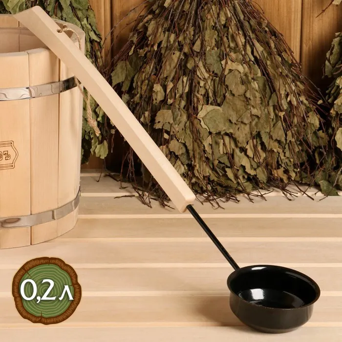 Ковш-черпак 0,2 л, с деревянной ручкой, черный