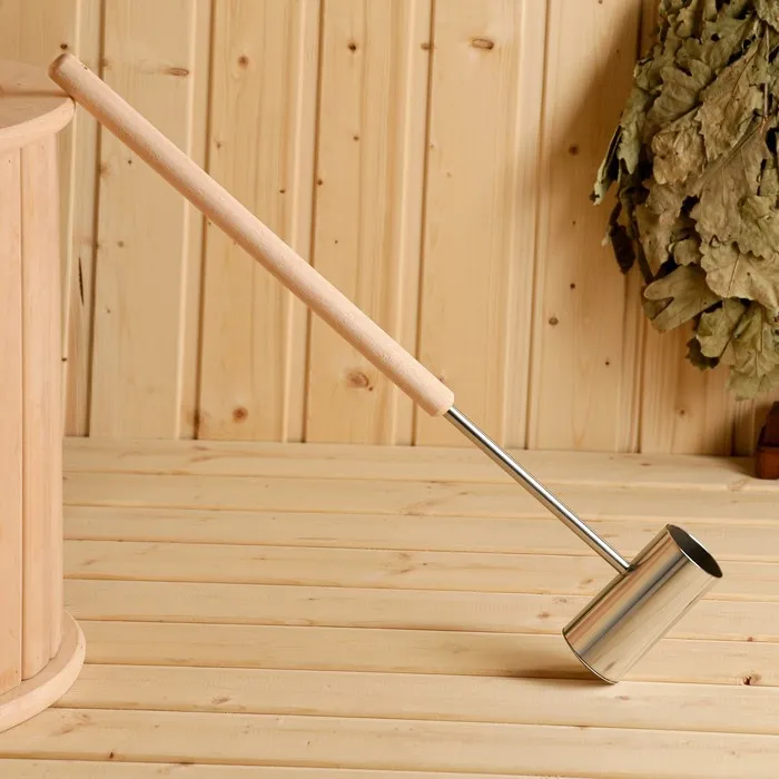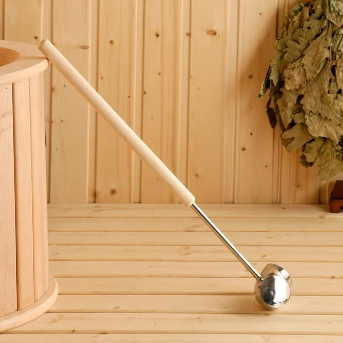 Ковш-черпак для бани из нержавеющей стали, 1.2л, 56 см, с деревянной ручкой