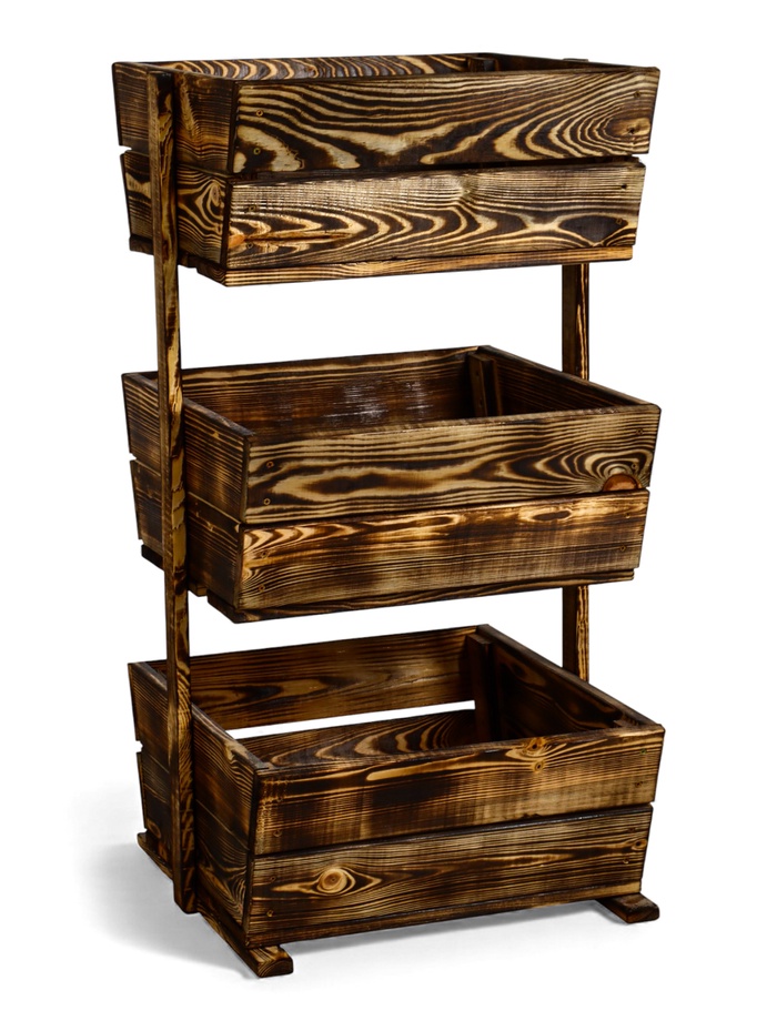 Стеллаж деревянный, 3 ящика 100×54×50 см, обожжённый, «Добропаровъ»