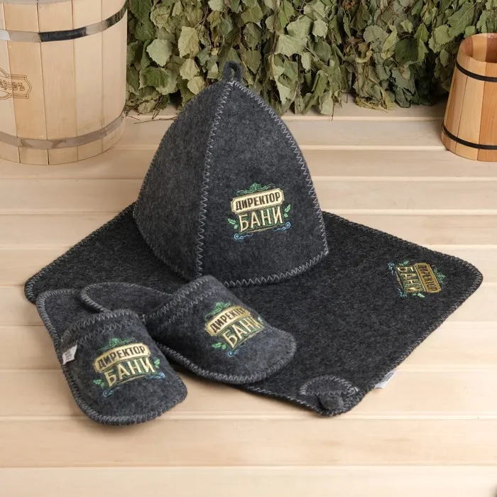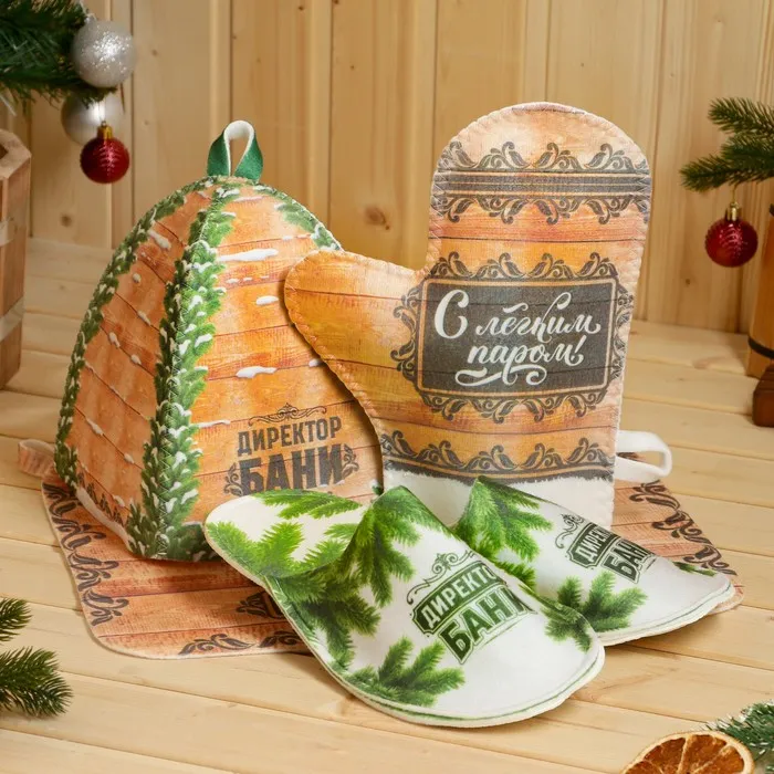 Набор для бани с принтом «Директор бани», 4 предмета: шапка, рукавица, тапочки, коврик, войлок, «Банная забава»