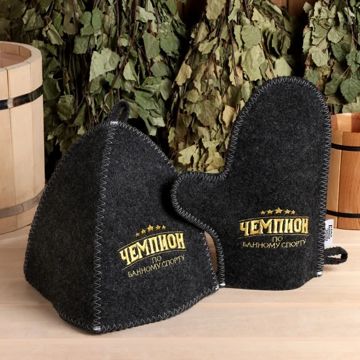 Набор для бани "Чемпион по банному спорту" 2 предмета шапка, варежка с вышивкой
