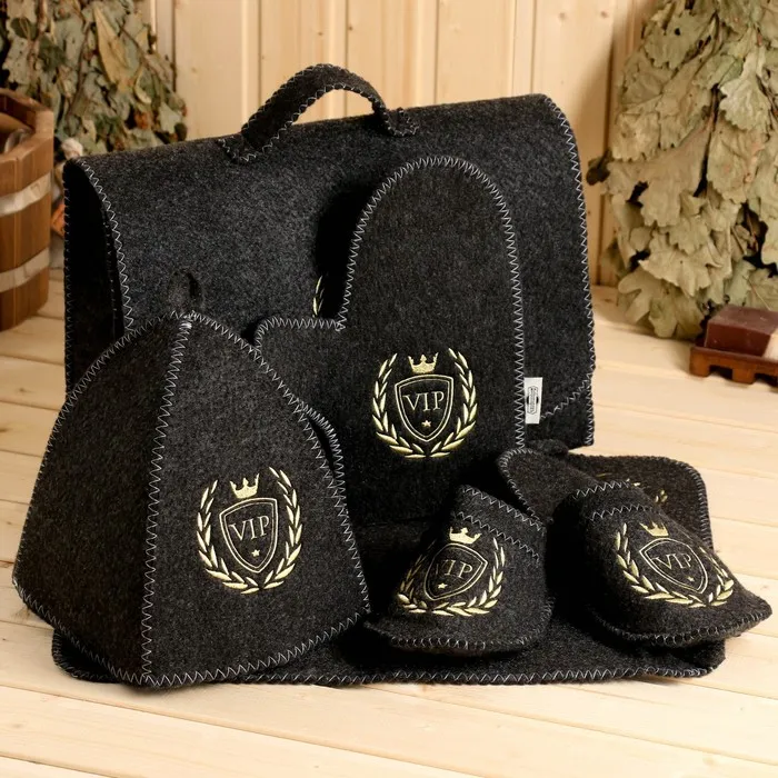 Набор банный "VIP" 5 предметов (портфель, шапка, варежка, коврик, тапки)
