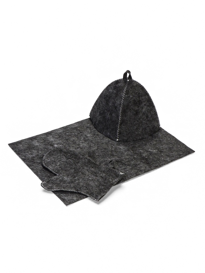 Набор для бани, 3 предмета: шапка, рукавица, коврик, серый, «Добропаровъ»