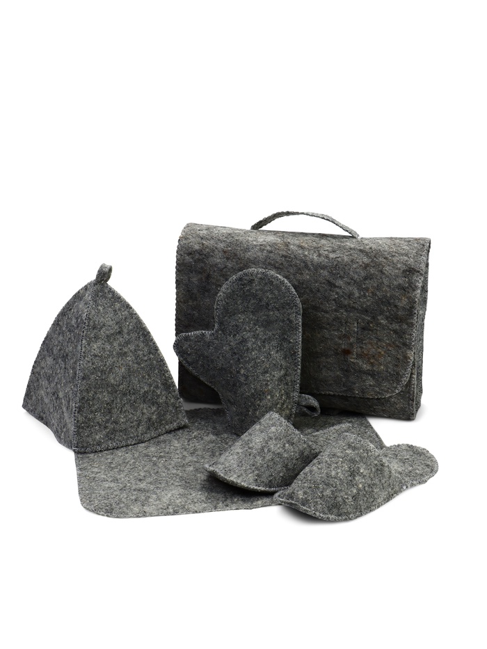 Набор для бани и сауны «Тёмный», 5 предметов: шапка, коврик, рукавица, тапочки, портфель, «Добропаровъ»