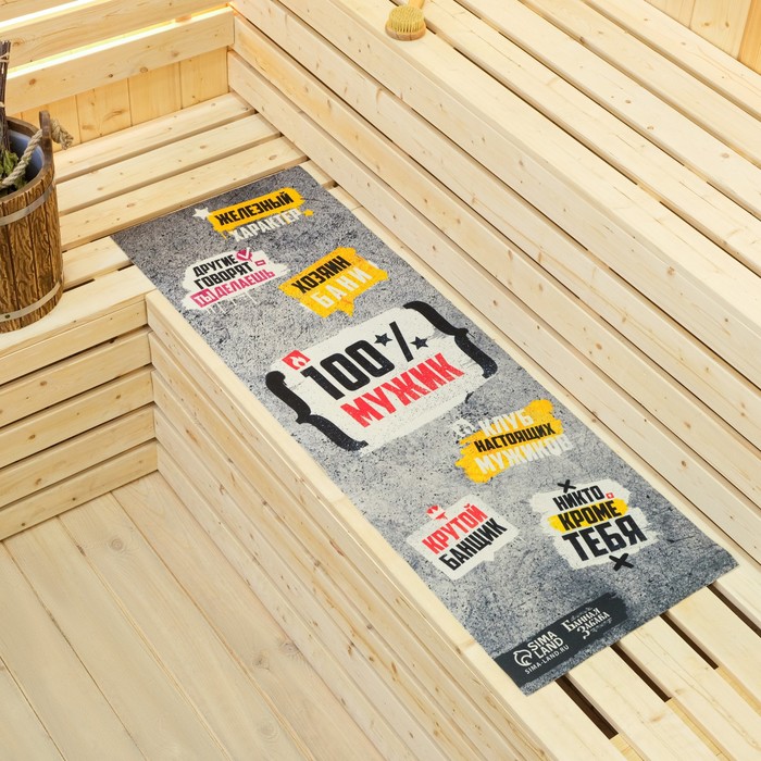 Коврик - лежак для бани и сауны с принтом «100% мужик», 150×50 см, полиэфир 70%, шерсть 30%, «Банная забава»