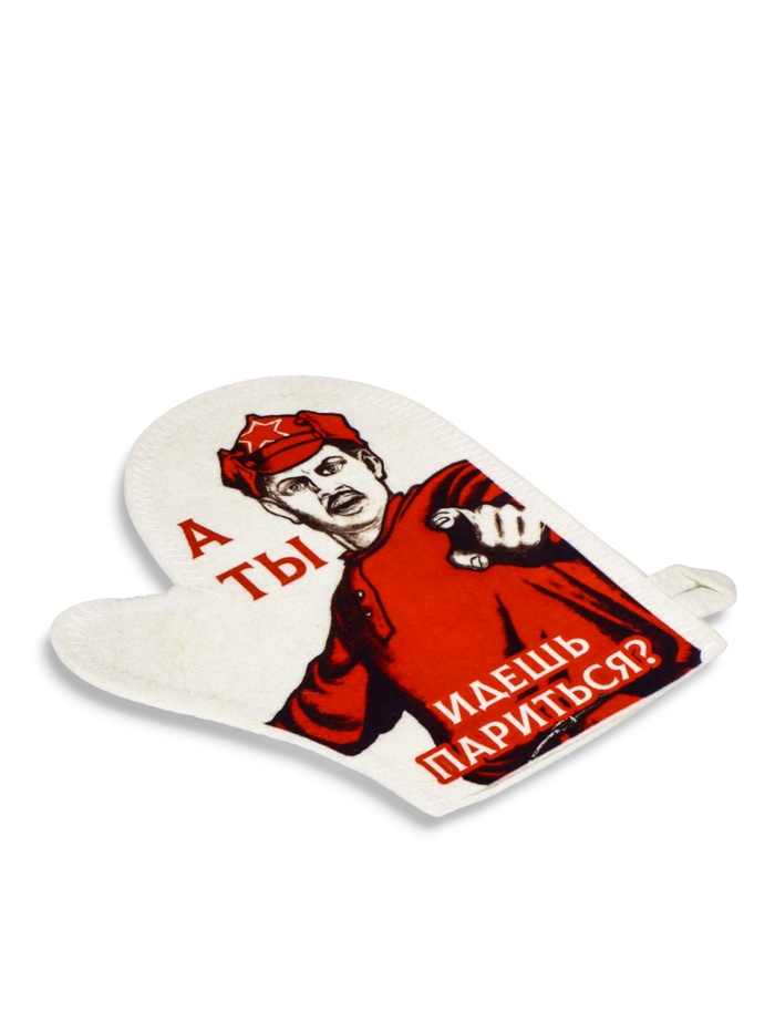 Рукавица для бани и сауны «А ты идешь париться?», белая