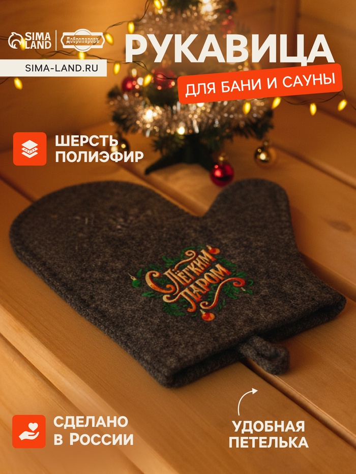 Рукавица для бани и сауны «С лёгким паром», полиэфир 70%, шерсть 30%, «Добропаровъ»