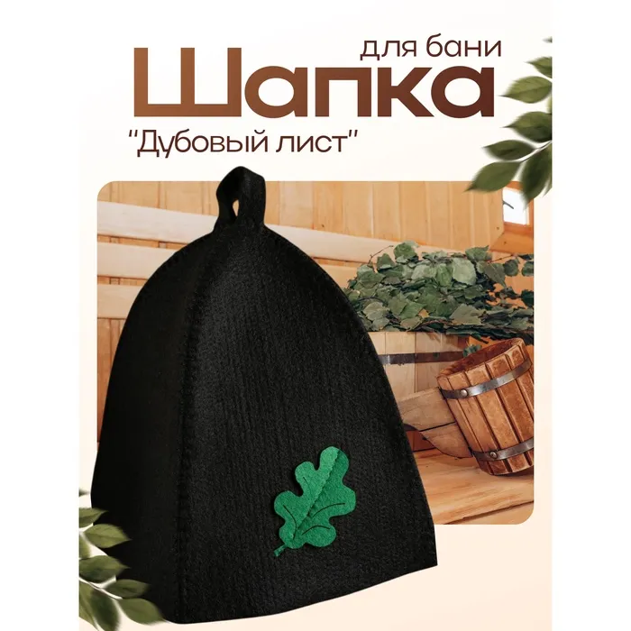 Шапка для бани и сауны, с аппликацией «Дубовый лист» чёрный, полиэфир