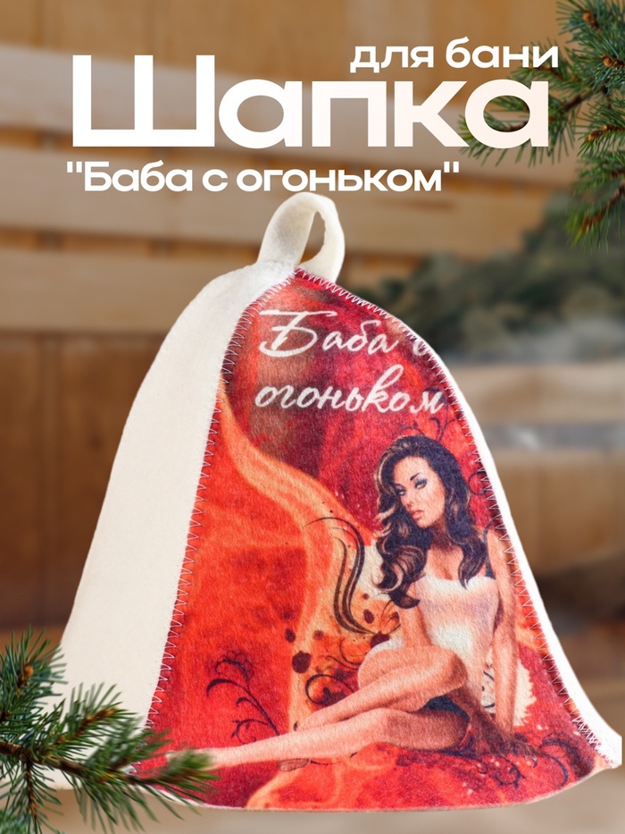 Шапка для бани и сауны «Баба с огоньком», полиэфир 70%, шерсть 30%, «Добропаровъ»
