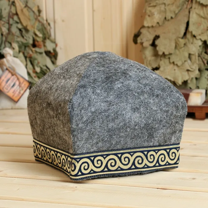 Шапка для бани и сауны с отделочной лентой «Тюбетейка», войлок, серая