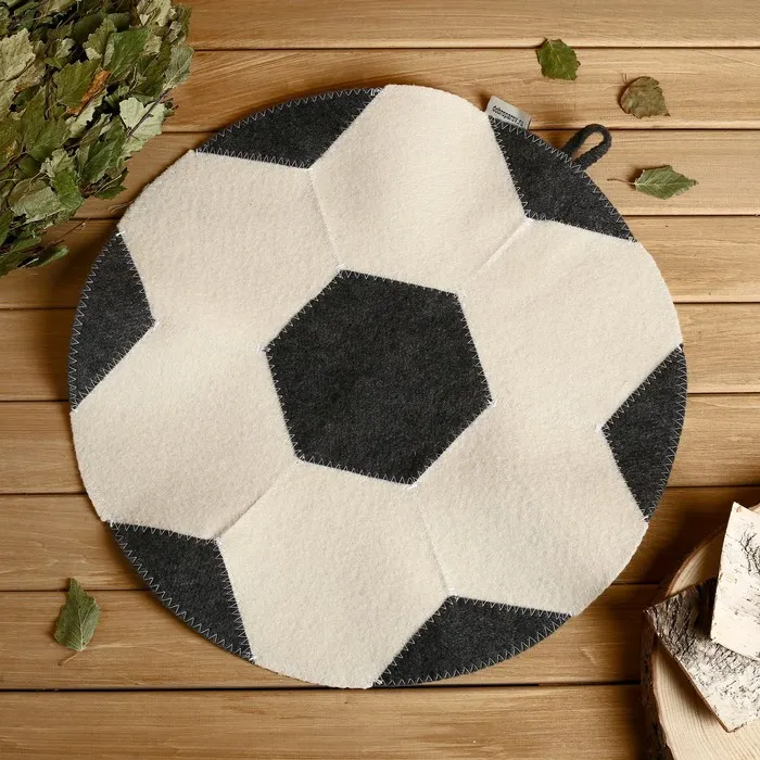 Коврик - сидушка для бани и сауны «Мяч», круглый, диамтер 45 см, полиэфир 70%, шерсть 30%, чёрно-белый, «Добропаровъ»