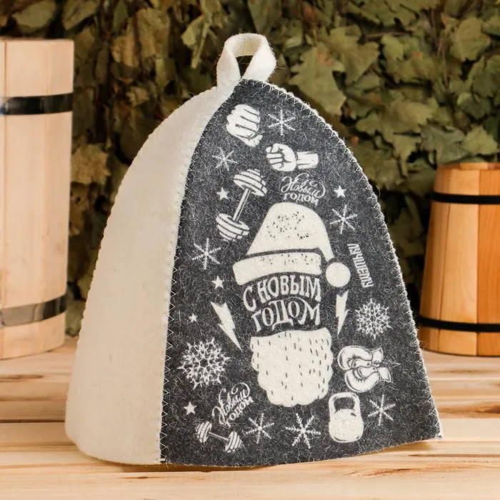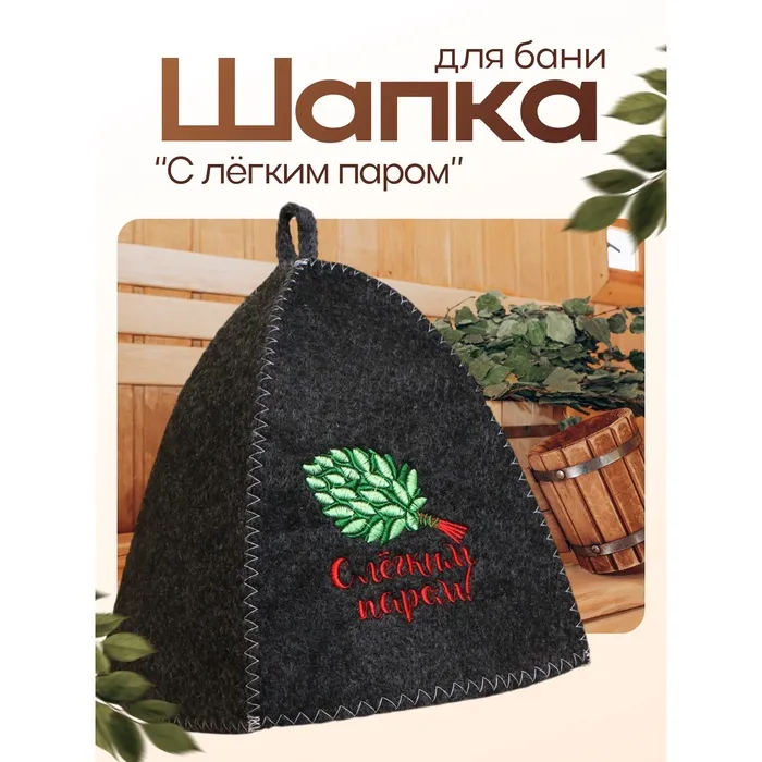 Шапка для бани и сауны, с вышивкой «С лёгким паром», полиэфир 70%, шерсть 30%, серая, «Добропаровъ»