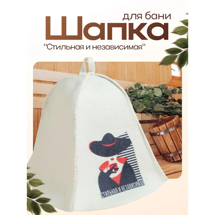 Шапка для бани и сауны, с принтом «Стильная и независимая», полиэфир 20%, шерсть 80%