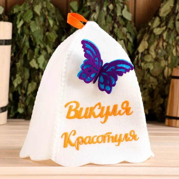 Шапка для бани и сауны, с аппликацией «Викуля-Красотуля», войлок