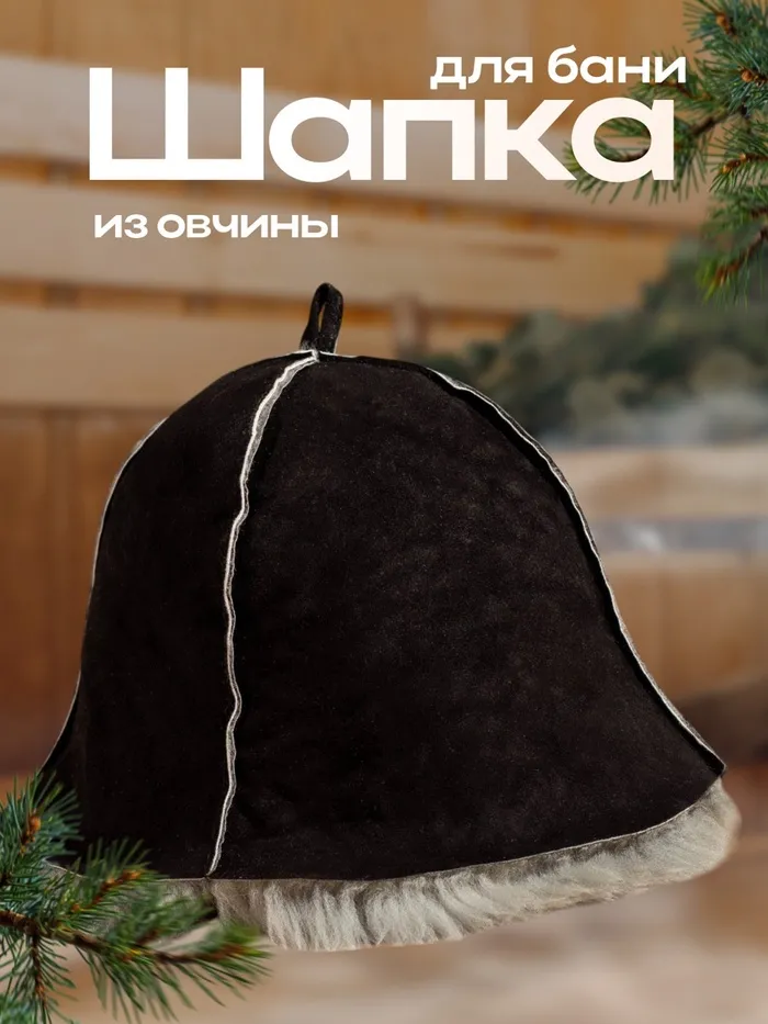 Шапка для бани и сауны «Премиум» прямострочный шов, овчина, чёрная