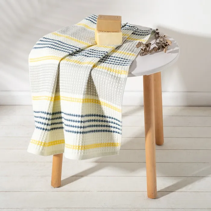 Полотенце вафельное банное «Этель» Waffle, 70×140 см, 100% хлопок, 280 г/м², жёлто-синее