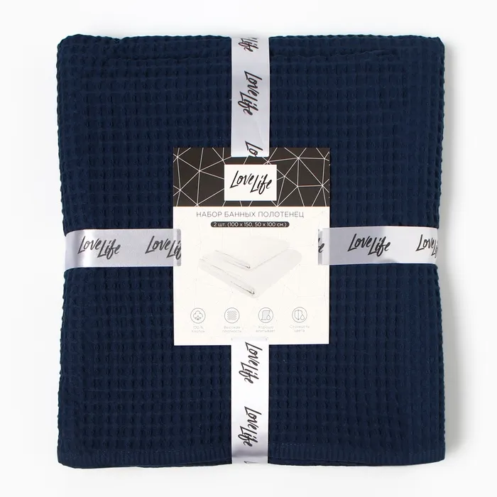 Набор банных полотенец LoveLife "Waffle blue" 2 шт: 100х150, 50х100 см., 100% хл