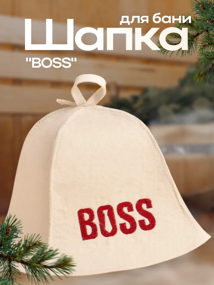 Шапка для бани и сауны с вышивкой BOSS, шерсть 100%, светлая, «Добропаровъ»