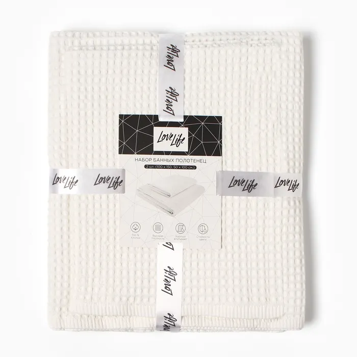 Набор банных полотенец LoveLife "Waffle stone" 2 шт: 100х150, 50х100 см., 100% хл