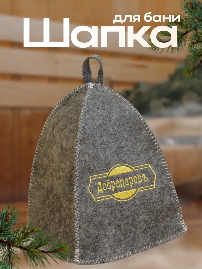 Шапка для бани классическая, серая с золотой вышивкой "ДОБРОПАРОВЪ"