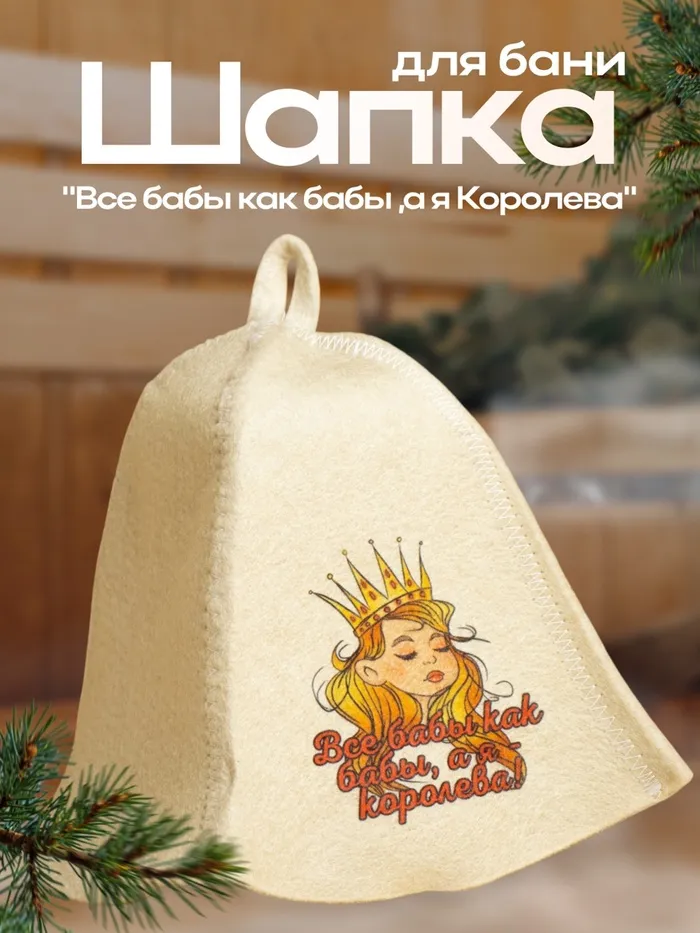 Шапка для бани и сауны, с принтом «Все бабы как бабы, а я Королева», полиэфир 20%, шерсть 80%, белая, «Добропаровъ»