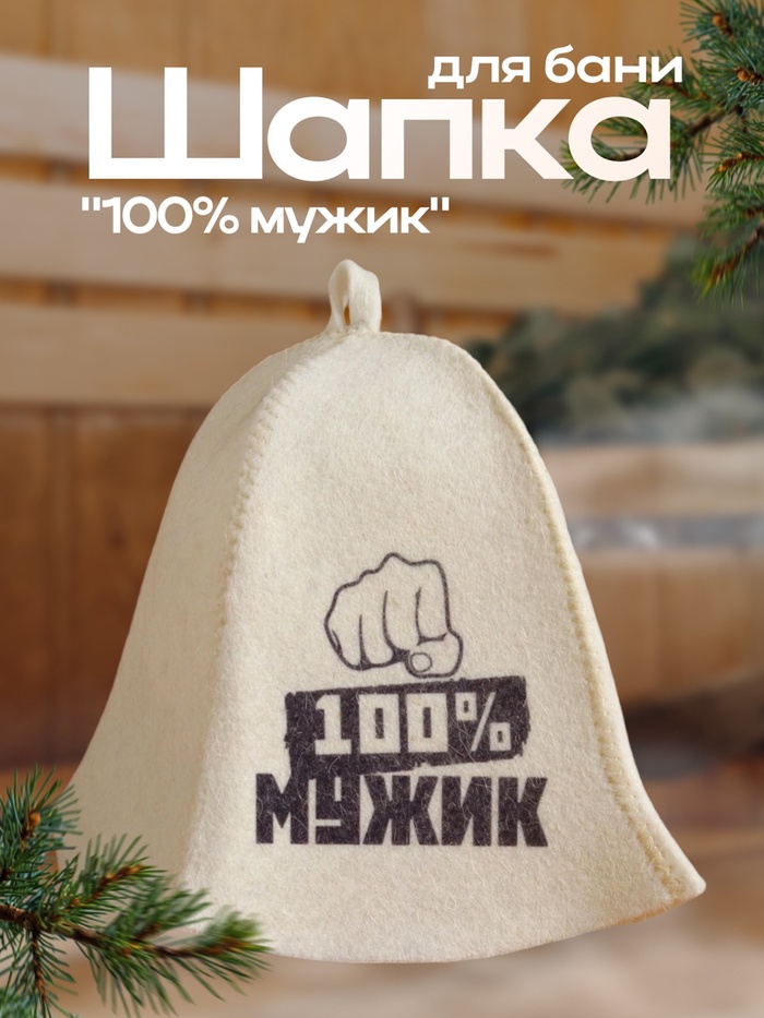 Шапка для бани "100% МУЖИК" с принтом, белая