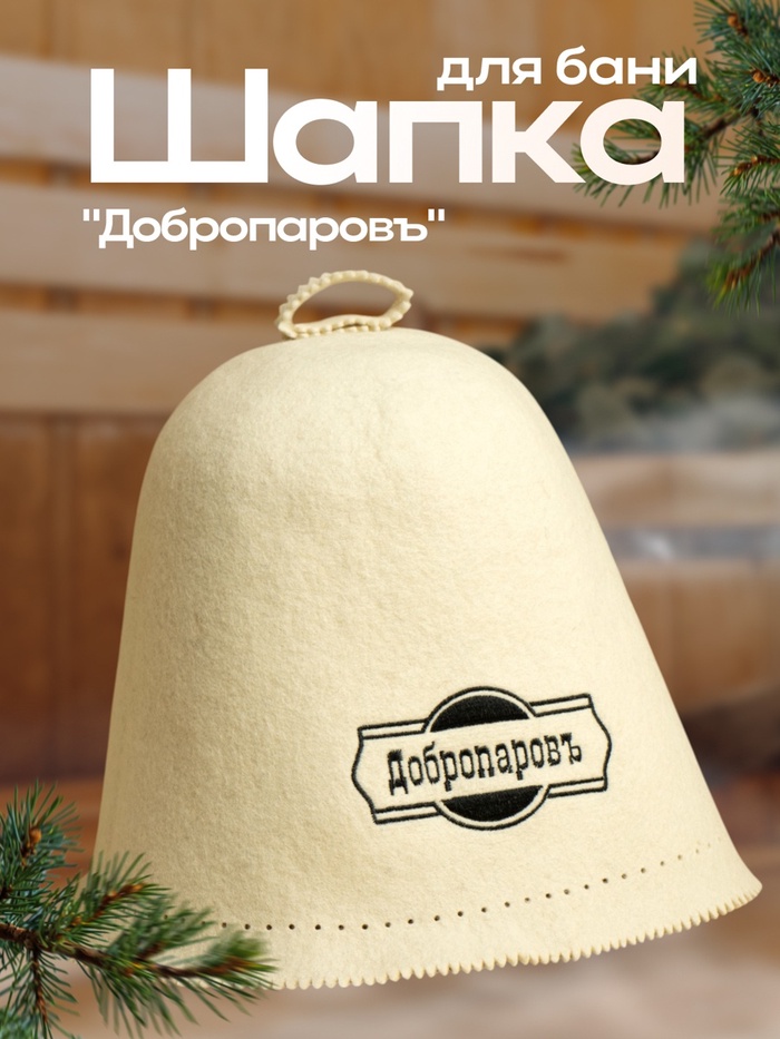 Шапка для бани и сауны, полиэфир 70%, шерсть 30%, светлая, «Добропаровъ»