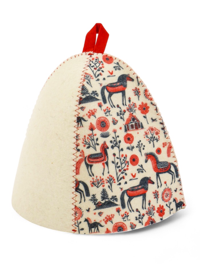 Шапка для бани и сауны «Мезенские кони», полиэфир 70%, шерсть 30%