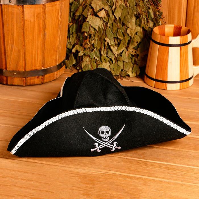 Шапка для бани и сауны «Пиратская шляпа», полиэстер, шерсть, чёрная, «Добропаровъ»