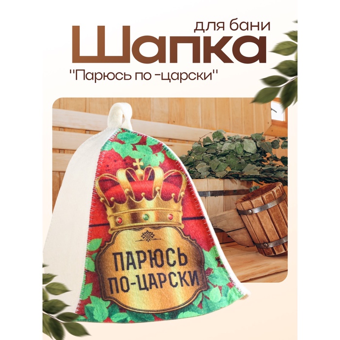 Шапка для бани и сауны «Парюсь по - царски», полиэфир 70%, шерсть 30%, «Добропаровъ»
