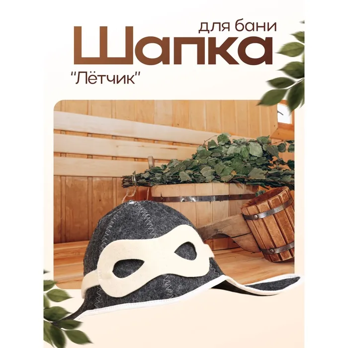 Шапка для бани и сауны «Лётчик», полиэфир 70%, шерсть 30%, белая, «Добропаровъ»