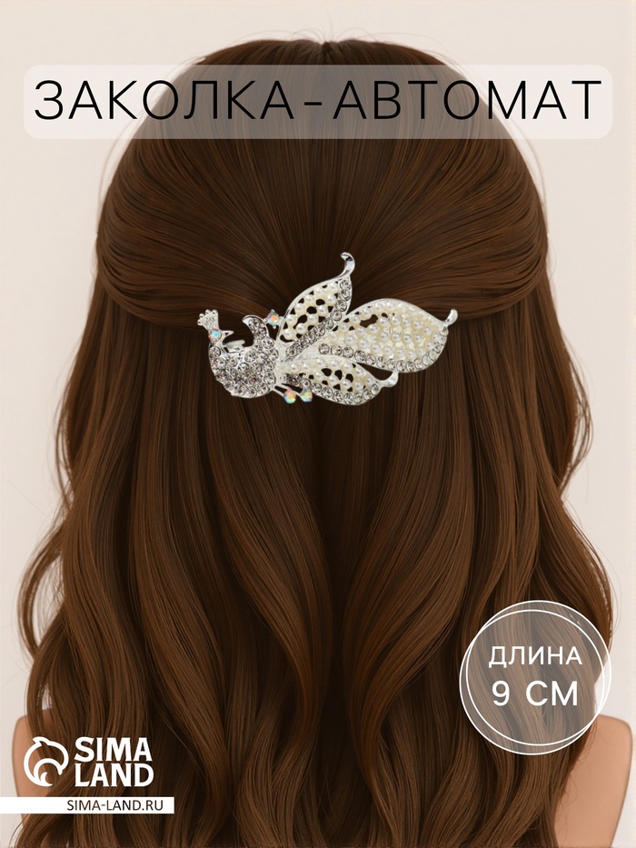 Заколка - автомат для волос «Гелая», жар-птица, 9 см, серебристо-белая