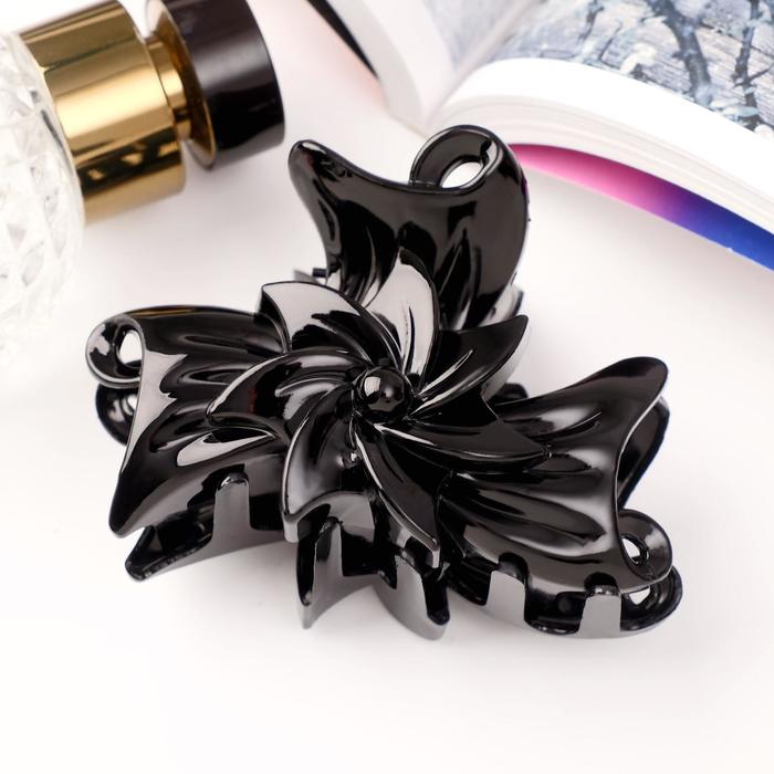 Крабик для волос «Классик», бантик с цветком, 8×5.5 см, чёрный