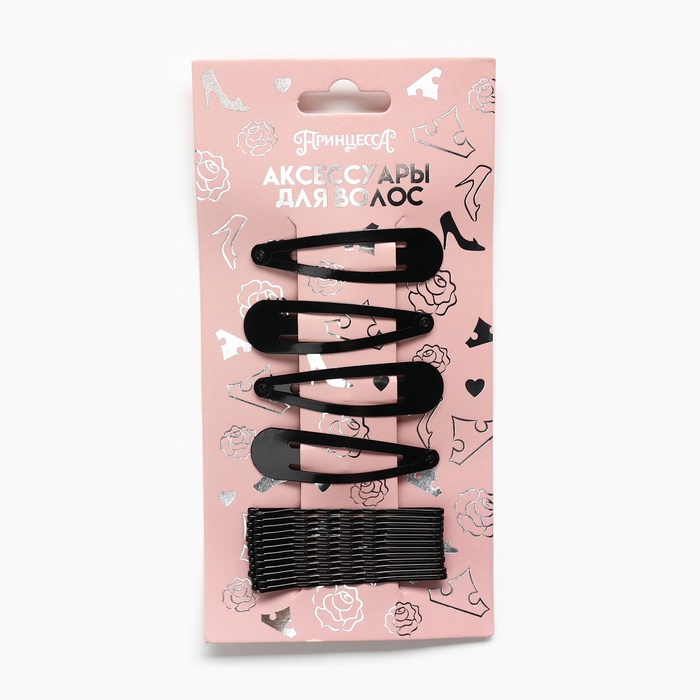 Невидимка черная 12 шт., 5 см, заколка клик-клак 4 шт., 5 см, набор, Принцессы