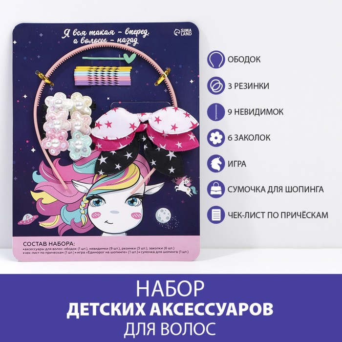 Аксессуары для волос детские, набор «Единорожек», 17 х 22 см