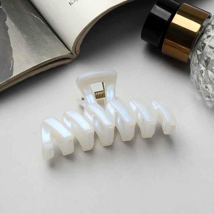 Крабик для волос «Жемчужный», зиг-заг, 7 см, белый