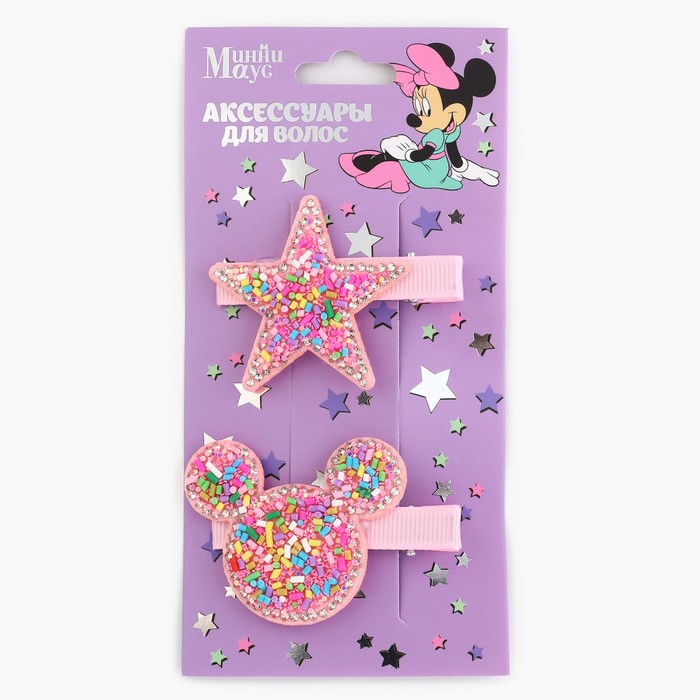 Заколка для волос с блестками, 2 шт., 5.5 см, звезда, Минни Маус