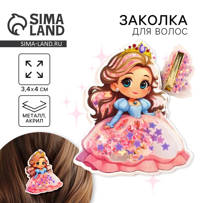 Заколка для волос, шейкер «Принцесса» 3,4 х 4 см