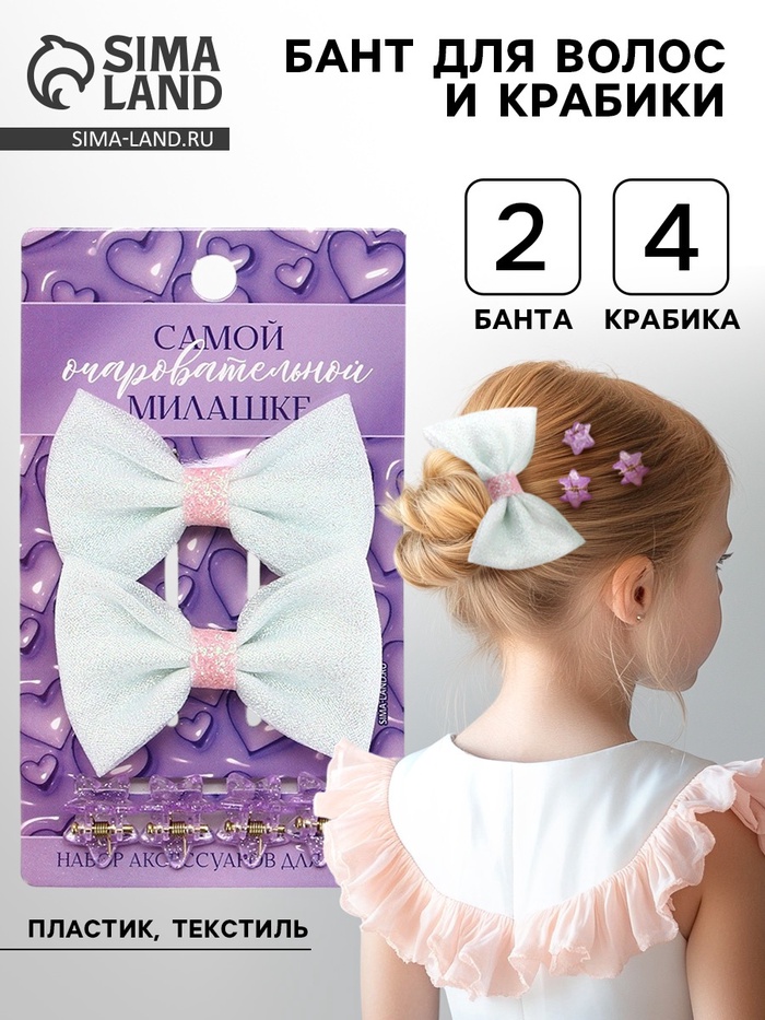 Бант для волос и крабики «Милашке» 2 шт.
