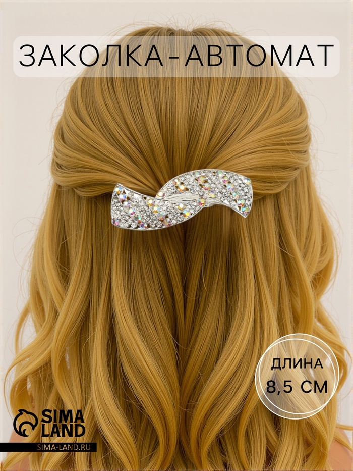 Заколка - автомат для волос «Линетта», волны, 8.5 см, серебро