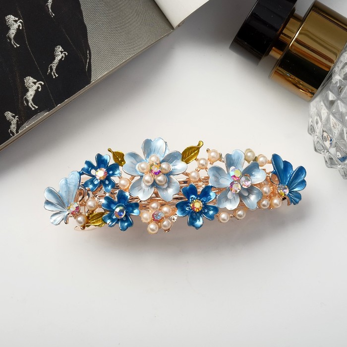 Заколка - автомат для волос «Вальс цветов», жемчуг, 9 см