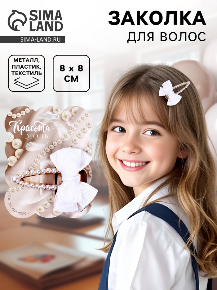 Заколка для волос жемчуг с бантиком «Красота» на выпускной