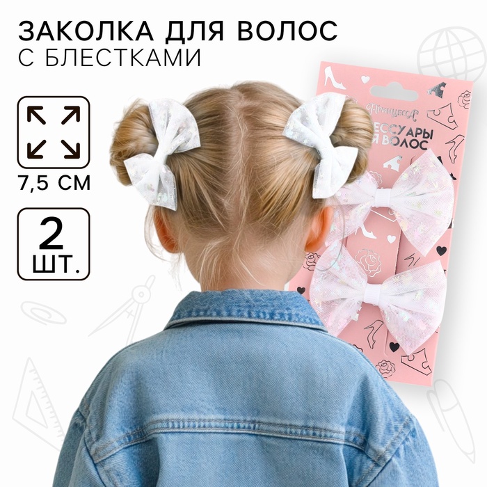 Заколка для волос белый бант, набор, 2 шт., 7.5 см, Принцессы