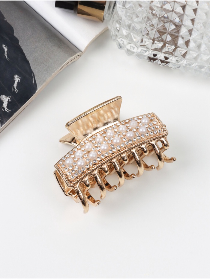 Краб для волос «Бурлеск», бусины стразы, 6 см, золото