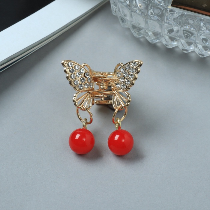 Крабик для волос «Милада», красные бусинки, 2.5 см, золото